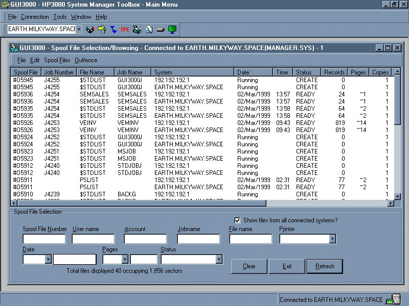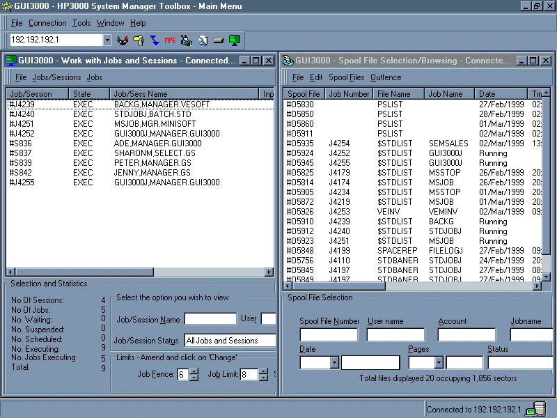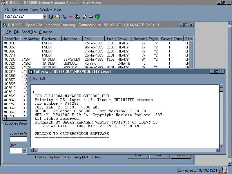 - Productivity - GUI3000 allows you to monitor and control multiple HP e3000 spool or job queues through one single window